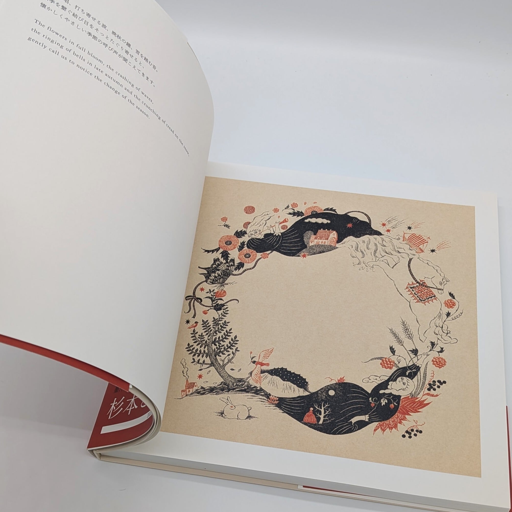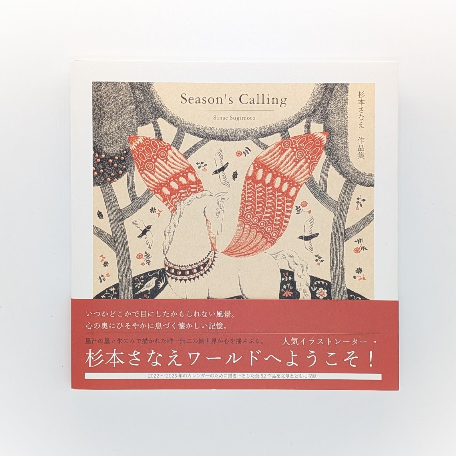 墨汁の墨と朱の2色だけで構成される繊細な筆致と大胆な構図。希代の人気イラストレーター・杉本さなえによる4年間のカレンダー、計52葉の作品と文章をすべて収録した永久愛蔵版。めくったページそれぞれに、見る者が自らの物語を重ね、沈思のひとときを愉しめる一冊。